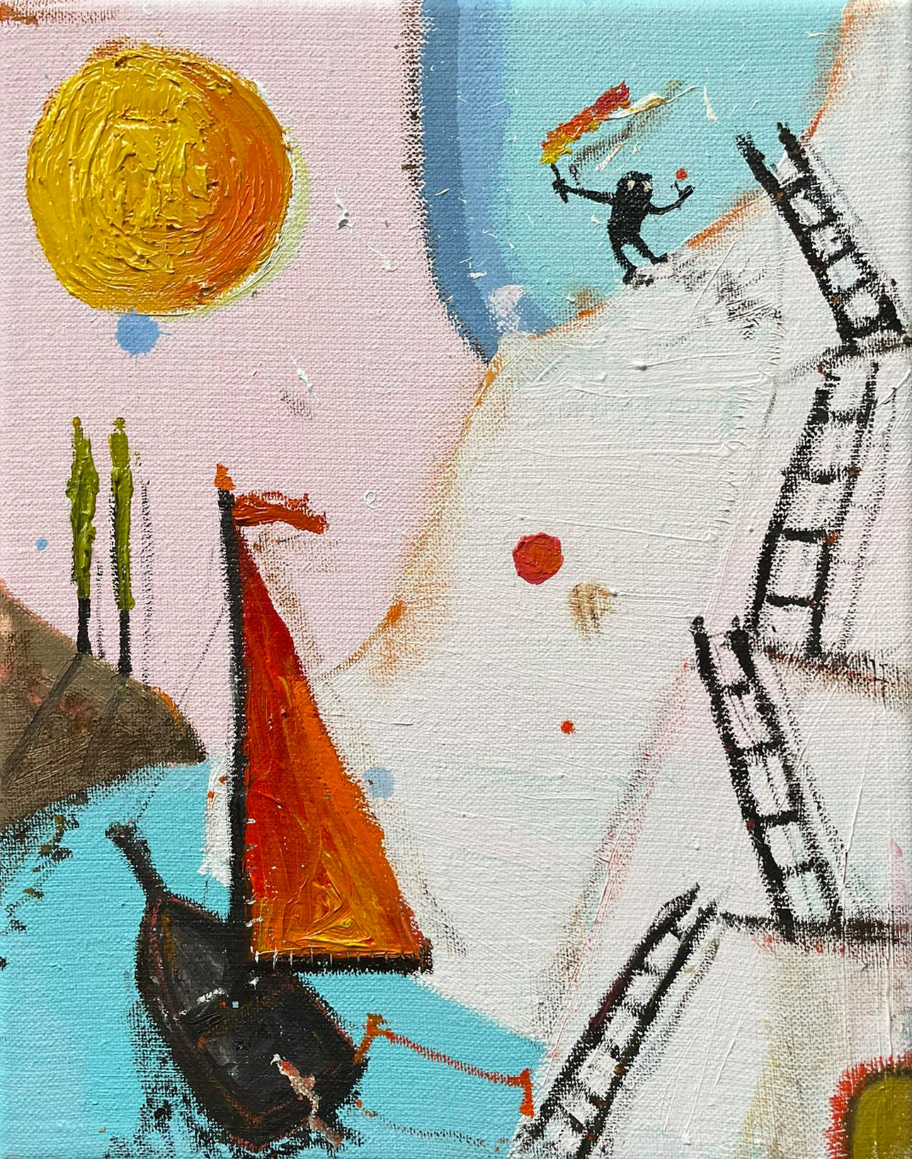 Philip Grözinger graduated from the Braunschweig Art Academy as a master student of Prof. Karl Schulz and taught painting for several years at the Kunsthochschule Weißensee in Berlin. In 2014 he was artist-in-residence at CCA Andratx, Mallorca, and in 1998 he received a scholarship from the state of Lower Saxony. His work can be seen in exhibitions worldwide, including Galerie Mikael Andersen in Copenhagen (solo exhibition 2022), Kunsthaus Bethanien Berlin as part of the exhibition ”Dissonanz. Plattform Germany” (2022), at the Kunstverein Bamberg with the solo exhibition ”Die Schönheit des sinnlosen Scheiterns” (2022), at the Berlinische Galerie as part of the exhibition ”Paint it All. Aktuelle Malerei aus Berlin” (2022/23) and at Choi & Choi in Seoul (2023).