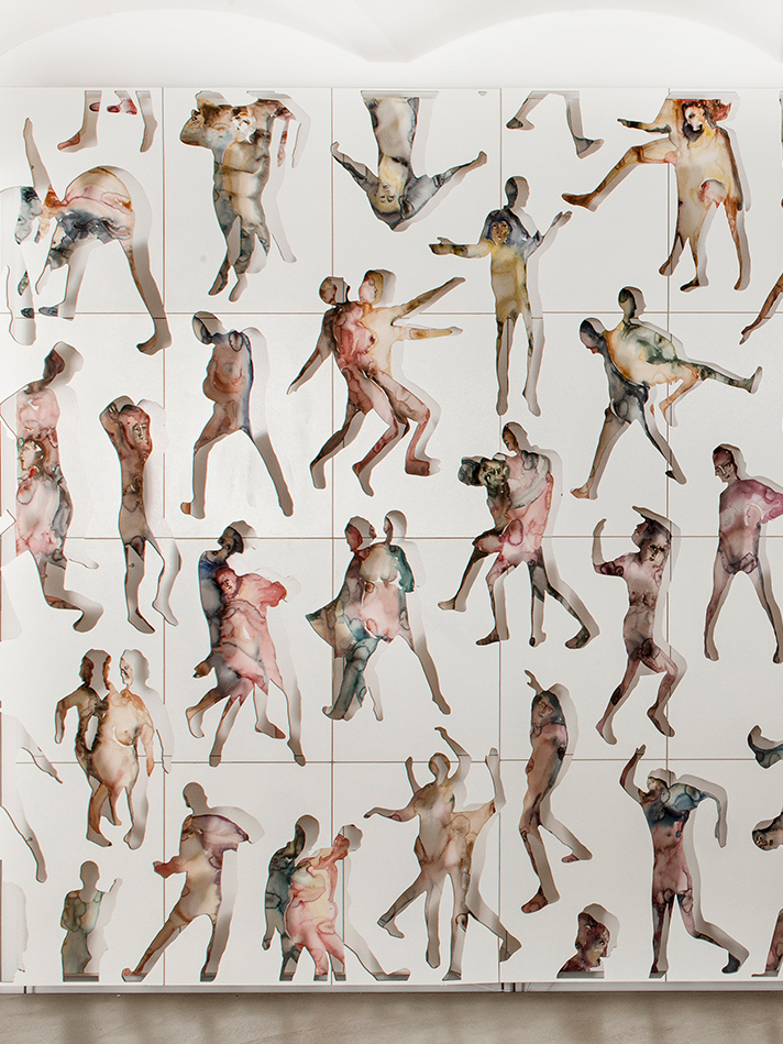 Tamara Kvesitadze achieved international appeal through her work with kinetic sculpture, making movement the essence of her creativity. Her artistic practice focuses on the tension between the human and its world, with the body always being at the centre of her exploration. Her way of understanding the body is ambiguous and always in flux. Her sculptures are dynamic and often with a deliberately unfinished quality to them. Bordering on the grotesque, they reference classical sculptures and allude to playful games between the subconscious and conscious worlds.