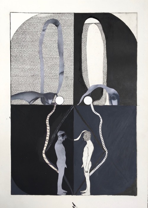 Disintegration brings together an amalgamation of different parts of British artist Robert Fry's practice: painting, etching and collage – the new works come together in a hybrid of applied oil paint, ink, collage and etchings on prints, as a new synergy is formed, the ambiguity of the definition of the work between multiple and unique, plays on the viewers mind. Continuing his investigation into the individual and the other, the mind and the body. Robert Fry strives to question the same in people, what makes them unique and what are the ways in which they reflect, represent and imitate each other, or perhaps, exist only as so called non-distinguishable multiples of one-another.