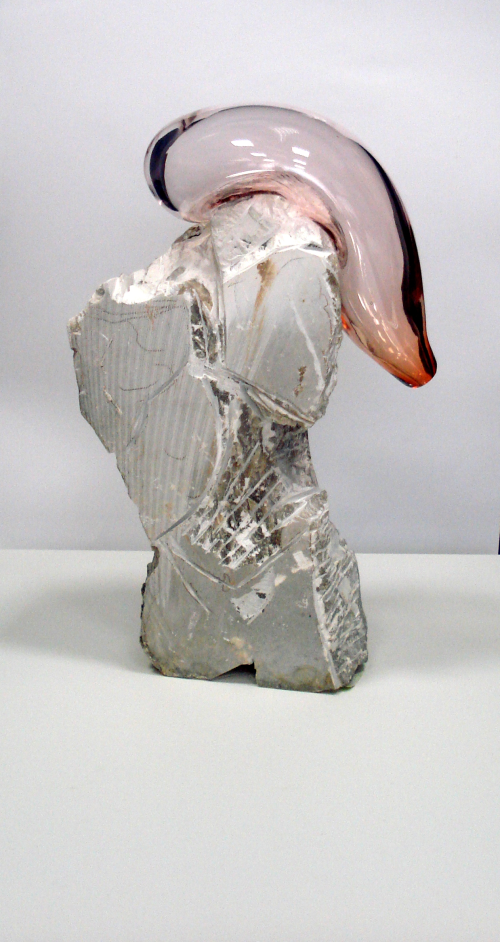 Nick Dawes creates complex colour arrangements with fluid forms and thus pursues a new quality of painterly abstraction. The ostensibly impulsive painterly gestures of his paintings are, however, achieved by an exact plan that leaves almost nothing to chance. The artist distils abstract forms from the formal particularities of road signs or other sign-like quotidian objects, which he then captures as pencil drawings and transfers to the canvas with thinned poured oil paint. In Susanne Roewer’s works, glass joins silver-plated bronze to such an extent that the transparent glass corpus adapts to the solid metal and thus reflects on its own process of formation. The glass is blown in temperatures over 1000 °C and shaped on the bronze corpus, and in its amorphous structure adjusts to the metal.