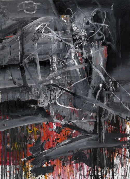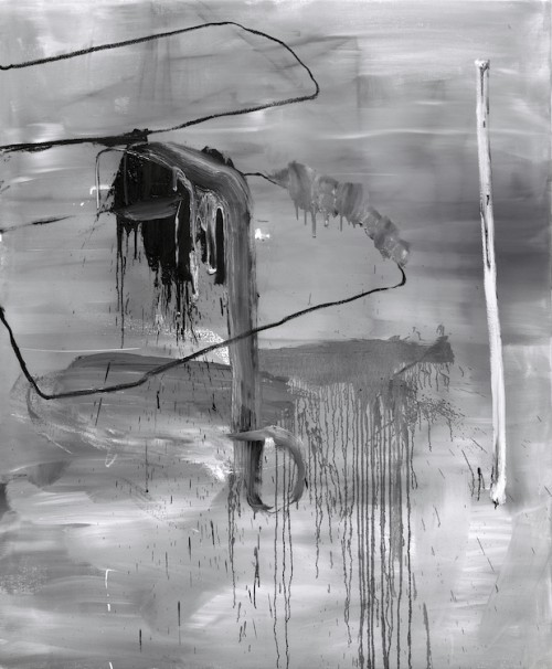 Seemingly abandoned factories and obsolete machinery have always been pivotal themes in Leonardo Silaghi’s paintings. His complex canvases depict industrial and visceral backgrounds in grey that are interspersed with jubilant sweeps of colour. His latest work has moved away from the immediacy of figurative into more abstract renderings, preserving the feeling of dense metallic structures and industrial remains, though not depicted in a figurative manner. Observing and photographing the omnipresence of structures, devices or tools in his environment, Silaghi explores the correlation of objects and illusion of space, as well as the boundaries of paint as a medium.