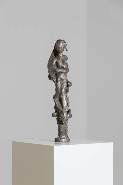 Tamara Kvesitadze achieved international appeal through her work with kinetic sculpture, making movement the essence of her creativity. Her artistic practice focuses on the tension between the human and its world, with the body always being at the centre of her exploration. Her way of understanding the body is ambiguous and always in flux. Her sculptures are dynamic and often with a deliberately unfinished quality to them. Bordering on the grotesque, they reference classical sculptures and allude to playful games between the subconscious and conscious worlds.