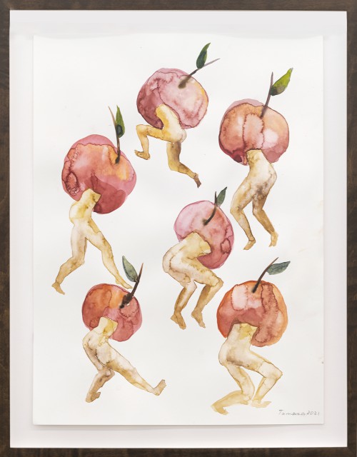 Rusudan Khizanishvili received her two BFAs in Painting from J.Nikoladze Art School and from Tbilisi State Academy of Art. In 2004 Rusudan received her MA in Film Studies from Tbilisi State Academy of Art. She invites viewers into multi layered portals of distorted figures and animals who act as symbolic door handles between cultures, nations, times and identities.