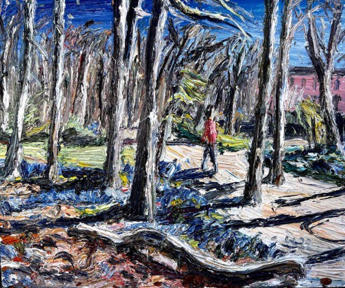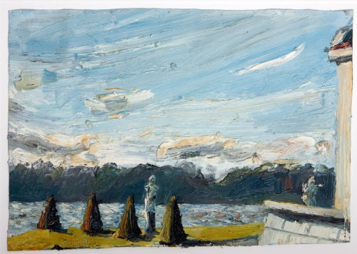 Christopher Lehmpfuhl carries the tradition of open-air painting into our present day. As the impressionists did more than 100 years ago, he takes his colours and his canvases and goes where his subject is. In Christopher Lehmpfuhl's practice, painting becomes a performative act that includes sight as well as touch, hearing and smell. His paintings are the result of an intense dialogue with the world through all the impressions that find their way onto the canvas through the painter's eyes, arms, hands and his colours.