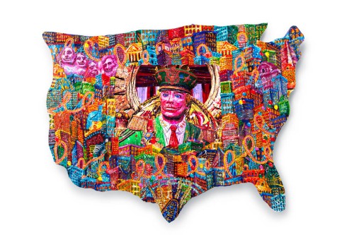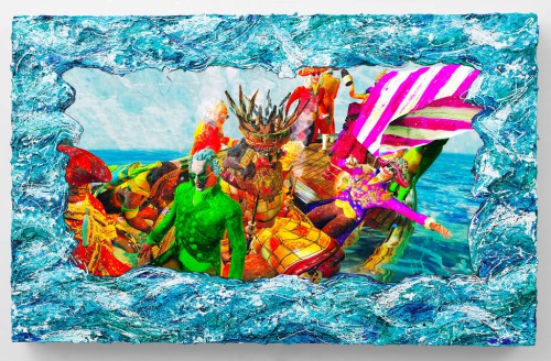 Solmi’s work utilizes bright colors and a satirical aesthetic to portray a dystopian vision of our present-day society. His exhibitions often feature articulate installations composed of a variety of media including virtual reality experiences, video installation, painting, drawing, and sculpture.
