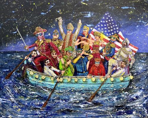 Federico Solmi, The Bacchanalian Ones, 2021, Virtual Reality Experience with three unique hand-sculpted masks (Theodora, George Washington, and Colombo)