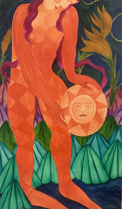 Rusudan Khizanishvili is a painter whose work challenges constructed identities and explores themes of transformation and female strength. Educated at the J. Nikoladze Art School and Tbilisi State Academy of Art, she holds BFAs in Painting and an MA in Film Studies. Over the past 15 years, Khizanishvili has exhibited internationally, including at the Venice Biennale, the Museum of Modern Art Tbilisi, and galleries across Europe, the USA, and South Korea. Her works are part of prominent collections like the Georgian National Museum and private collections worldwide. Her art combines bold archetypal imagery with abstract reflections on human history and evolution, creating vibrant worlds of transformation and resilience.