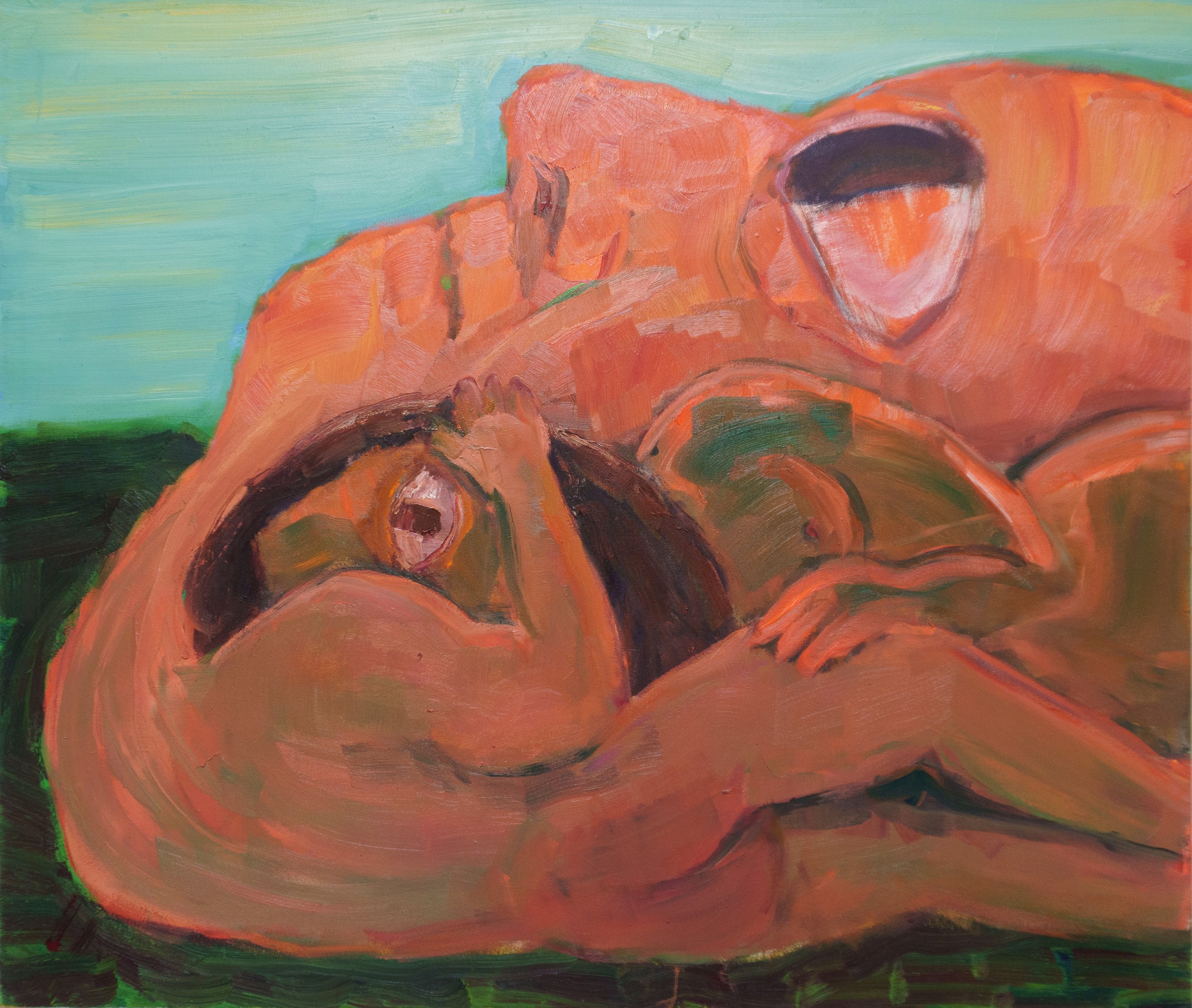 Shanee Roe, born in 1996 in New York, studied Fine Arts and Animation at the Academy of Fine Arts in Vienna and Leipzig under Daniel Richter and Christoph Ruckhäberle. She currently lives and works in Berlin. Stripping away idealisation to reveal the raw, unfiltered human experience, Roe guides us through the complexities of intimacy. Playful yet unsettling, her figures exist in states of vulnerability—exposed, clumsy, fragmented.