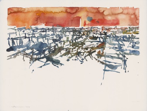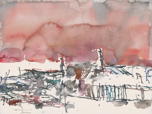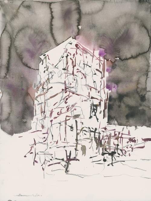 Tammam Azzam’s solo exhibition Aftermath features a new series of watercolors that explore destruction and its lasting traces. The artist's work focuses on urban landscapes that have been disfigured by war and violence. His cityscapes appear as fragile skeletons, ruins of once-vibrant places. With delicate lines and striking color accents, he creates compelling compositions that reflect not only Syria but also the universal consequences of armed conflict. Balancing documentary precision with painterly abstraction, his works reveal the scars of destruction and the silence that follows.