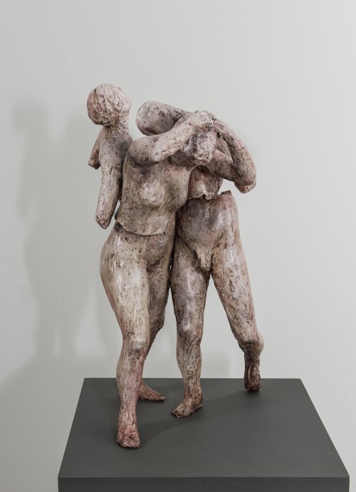 Kvesitadze’s artistic practice focuses on the tension between the human and its world, with the body always being at the centre of her exploration. Her way of understanding the body is ambiguous and always in flux. Seeing it as a constantly moving and transformative entity, her sculptures – often kinetic – are dynamic with a deliberately unfinished quality to them. Bordering on the grotesque, they reference classical sculptures and allude to playful games between the subconscious and conscious worlds.