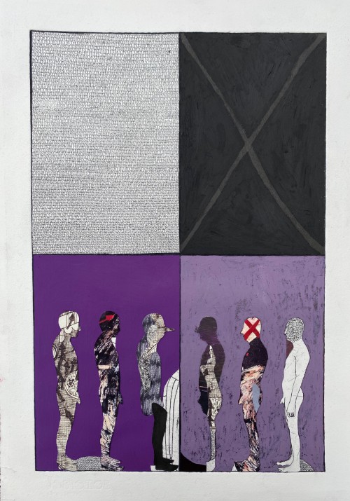Disintegration brings together an amalgamation of different parts of British artist Robert Fry's practice: painting, etching and collage – the new works come together in a hybrid of applied oil paint, ink, collage and etchings on prints, as a new synergy is formed, the ambiguity of the definition of the work between multiple and unique, plays on the viewers mind. Continuing his investigation into the individual and the other, the mind and the body. Robert Fry strives to question the same in people, what makes them unique and what are the ways in which they reflect, represent and imitate each other, or perhaps, exist only as so called non-distinguishable multiples of one-another.
