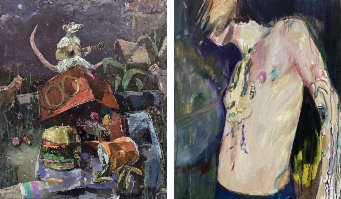 Fritz Bornstück, in turn, brings the small relics of everyday life to life in his oil paintings and ceramic sculptures – furniture, vessels, fragments of technology – which gain a new presence infused with poetic melancholy and subtle humour.