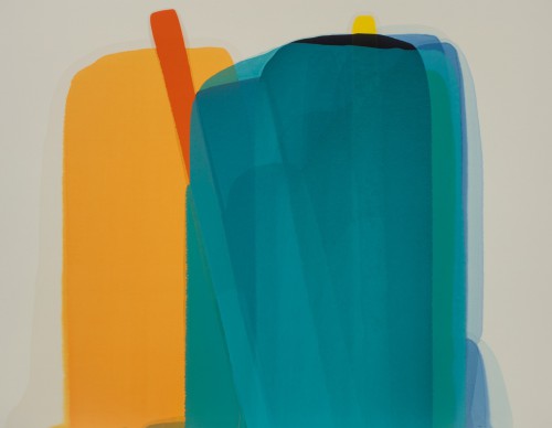 Nick Dawes creates complex colour arrangements with fluid forms and thus pursues a new quality of painterly abstraction. The ostensibly impulsive painterly gestures of his paintings are, however, achieved by an exact plan that leaves almost nothing to chance. The artist distils abstract forms from the formal particularities of road signs or other sign-like quotidian objects, which he then captures as pencil drawings and transfers to the canvas with thinned poured oil paint. In Susanne Roewer’s works, glass joins silver-plated bronze to such an extent that the transparent glass corpus adapts to the solid metal and thus reflects on its own process of formation. The glass is blown in temperatures over 1000 °C and shaped on the bronze corpus, and in its amorphous structure adjusts to the metal.