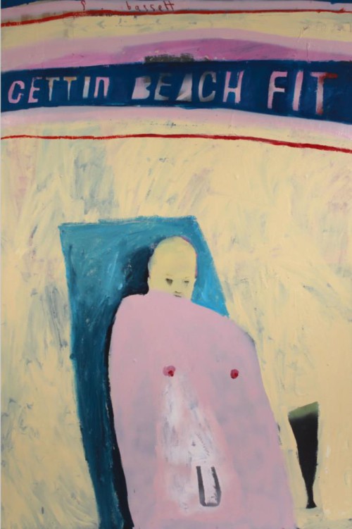 Developing a distinctive voice by diving head first into auto-biography, Bassett's works catalogue his day to day life with honesty, humour and pathos. This auto-biographic approach to painting leads Bassett to work in a figurative manner, making the figures in his painting an allegory to his life. Further themes in Bassett's art are of boats and fisherman as a reference to the traditions of his home town, St. Ives, as well as to his family background, and to contemporary leisure life. Questions about how our world is changing and how we place ourselves in-between the past and the future are raised.