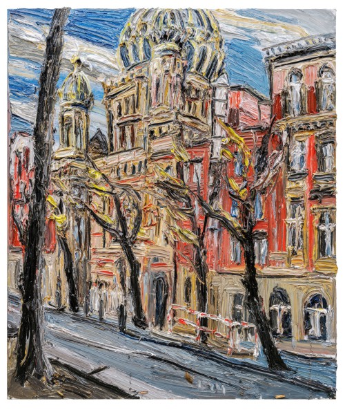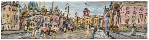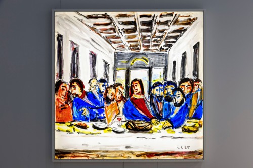 The exhibition Mehr Licht, conceived for KORNFELD Galerie Berlin, presents new oil paintings, watercolours and a light installation by Christopher Lehmpfuhl — an artist whose practice is grounded in the immediacy of experience and a deep engagement with place, history, and light. Working en plein air, Lehmpfuhl captures Berlin’s ever-shifting atmospheres in thick, physical brushstrokes, transforming fleeting moments into luminous, tactile images. At the heart of the exhibition is Last Supper, a large-scale glass work shown for the first time in Berlin