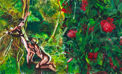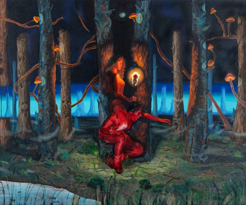 In the surrealist poem Life is but a Dream by Lewis Carroll, the protagonist finds herself in a kind of dream. Much better known, however, is book Alice's Adventures in Wonderland, in which the girl follows a white rabbit and dives into a wondrous world via a hole. Psychoanalysis, dream interpretation and hallucinogenic drug experiences were read in the work. The first solo exhibition of Paris Giachoustidis at KORNFELD GALERIE BERLIN shows new works from a series that deals specifically with dreams.