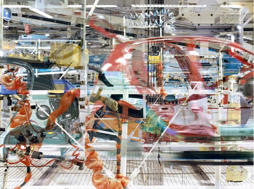 The large-scale photographs by the contemporary photographer Stéphane Couturier are never committed to representing the purely factual. They also create a new, image-immanent order of things: Through the superposition of two different images of the same place, the artist creates intensely colored to almost abstract works. His works, which have more in common with the definition of contemporary painting as color, line and surface than with traditional notions of photography as a document, are characterized by dynamic verticals and horizontals, elegantly curving lines and brilliant effects of light and color.