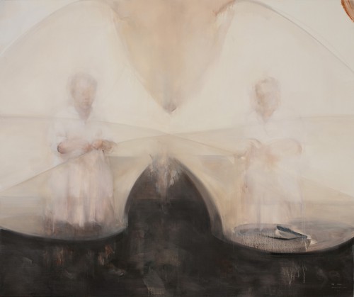The exhibition Under Shadows conceived for KORNFELD Galerie Berlin brings together new and recent works by Tamara Kvesitadze and Shunxiang Hu — two female artists whose lives and practices are shaped by profound social and political pressures. Each has lived under shadow — political, cultural, personal — and through their work, each steps out of it.